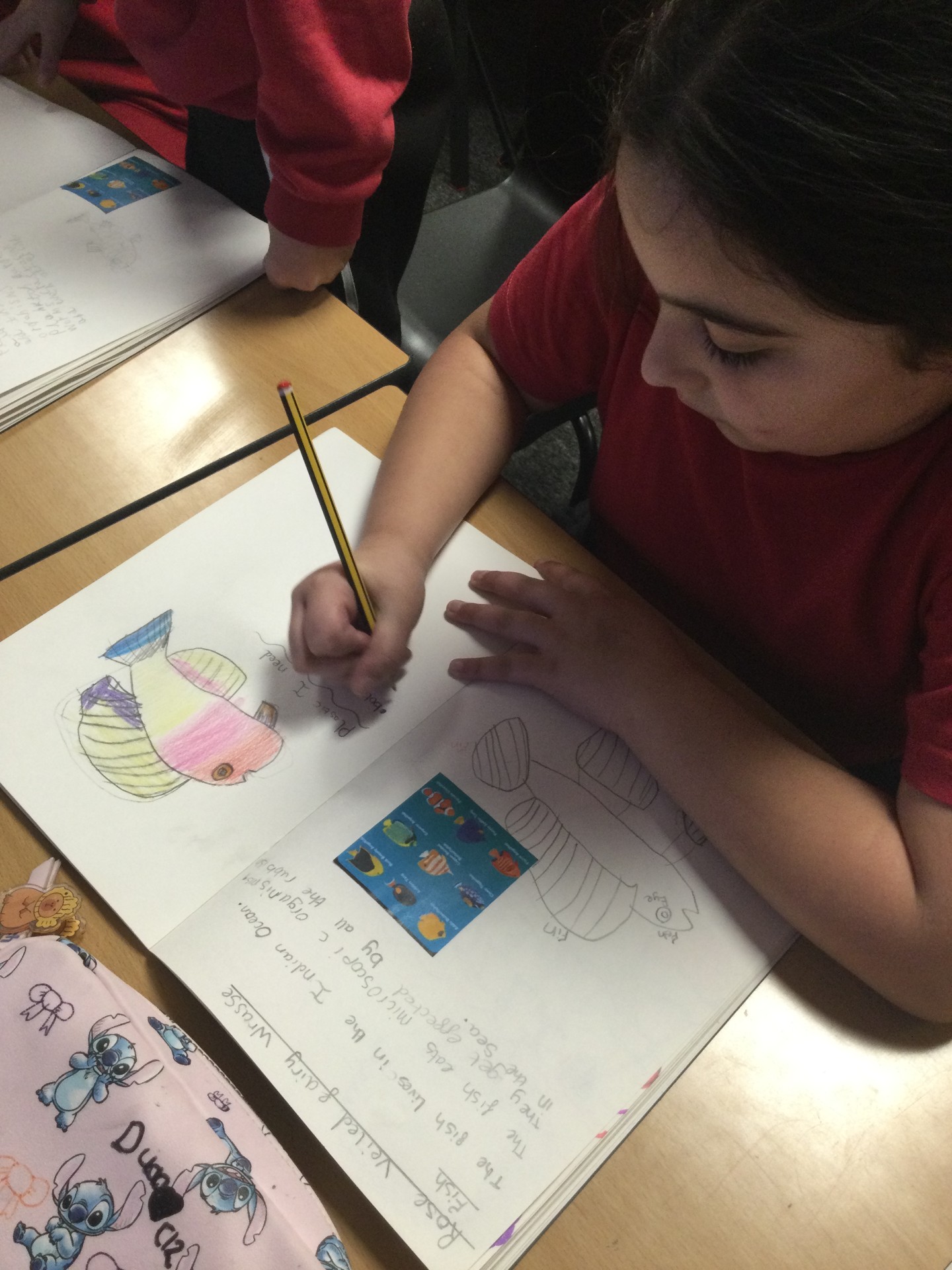 Today, in Art, they have chosen plastic waste to re-use to create a sea creature!