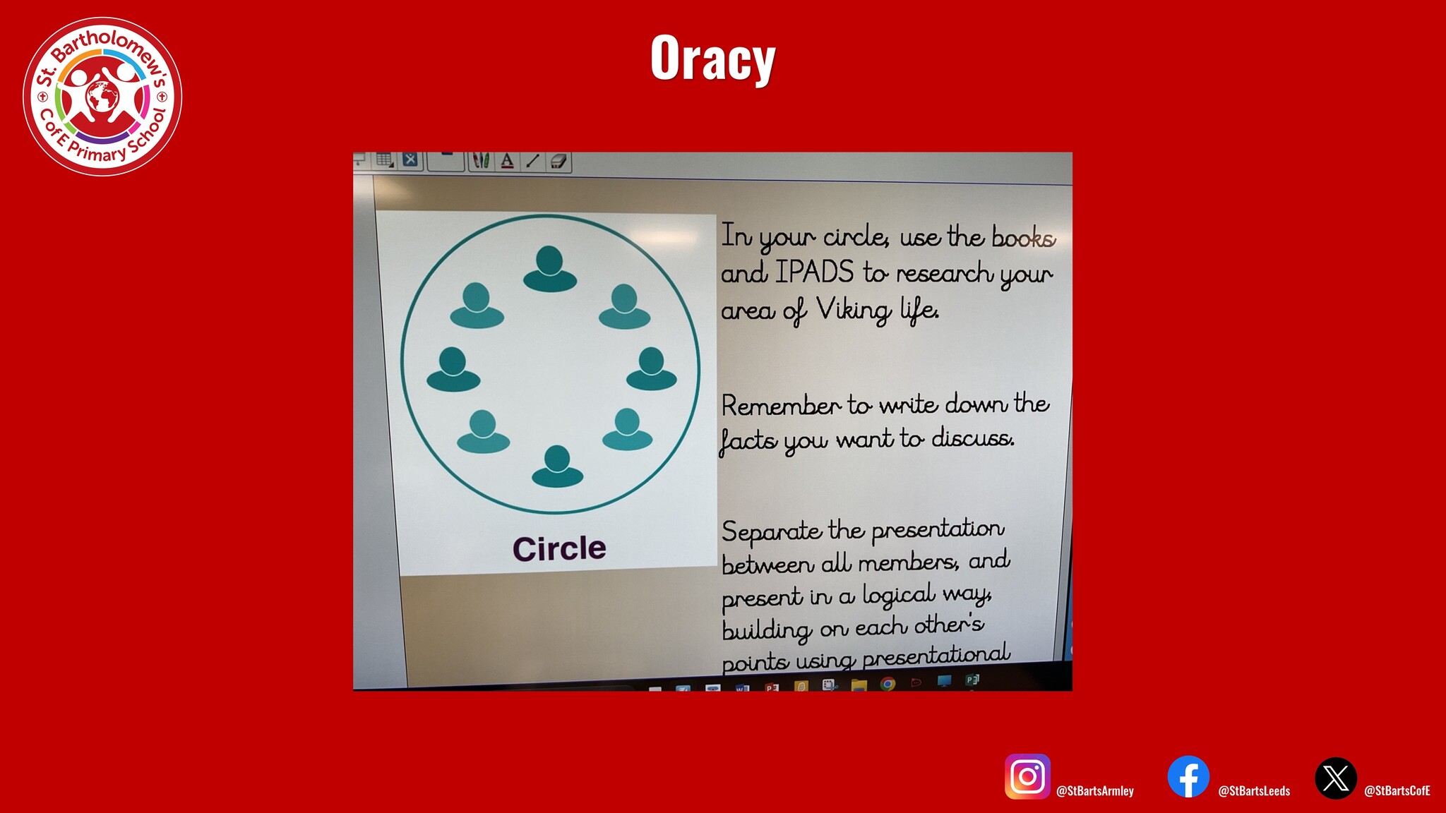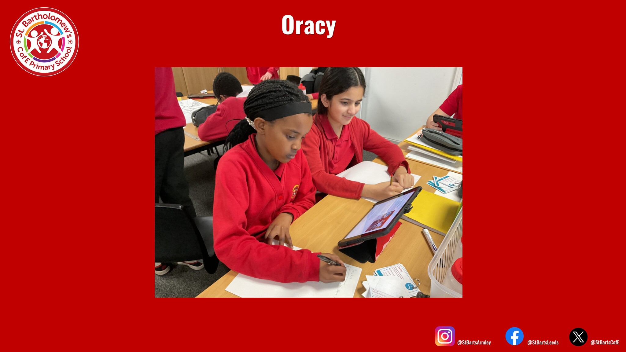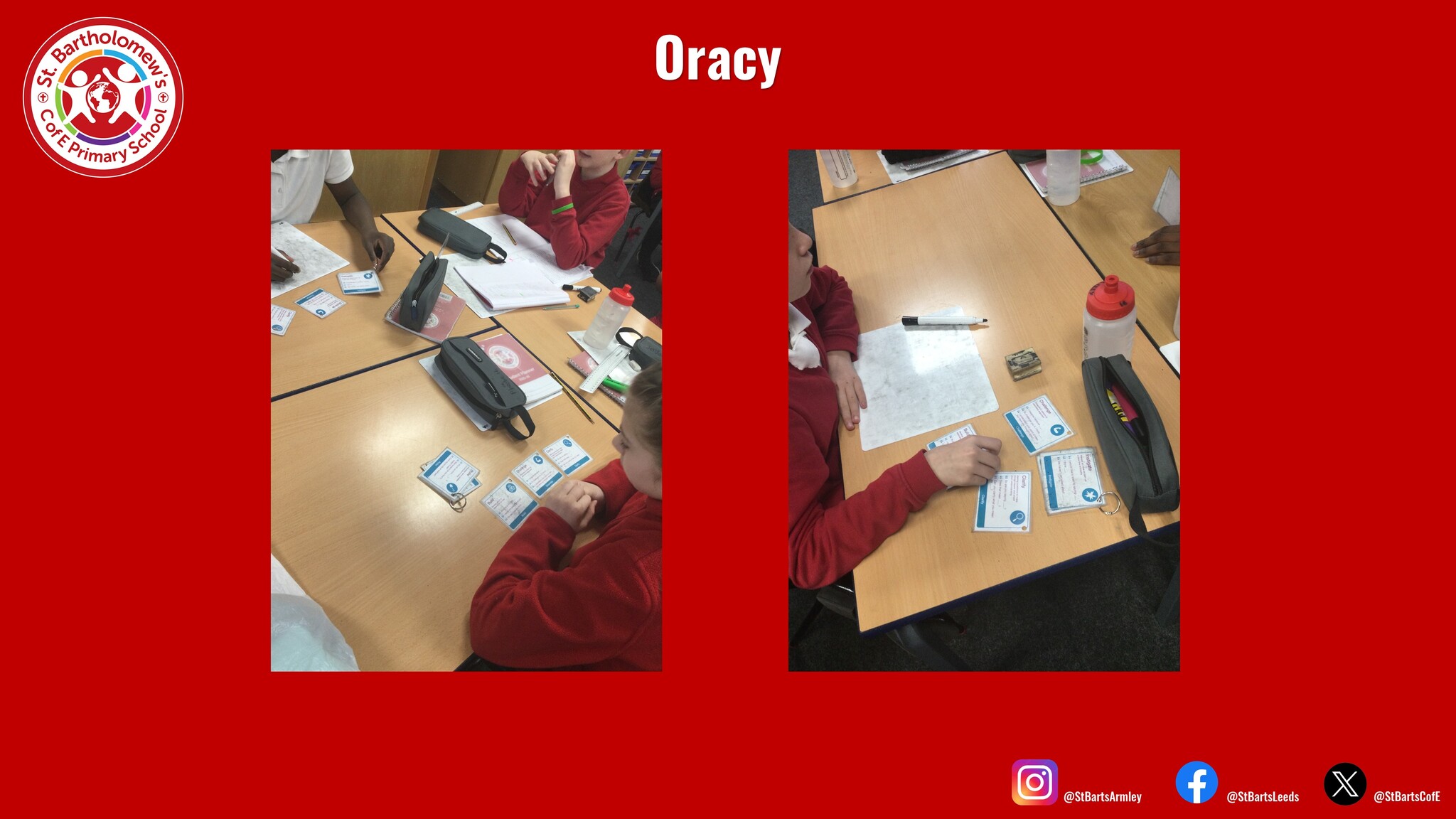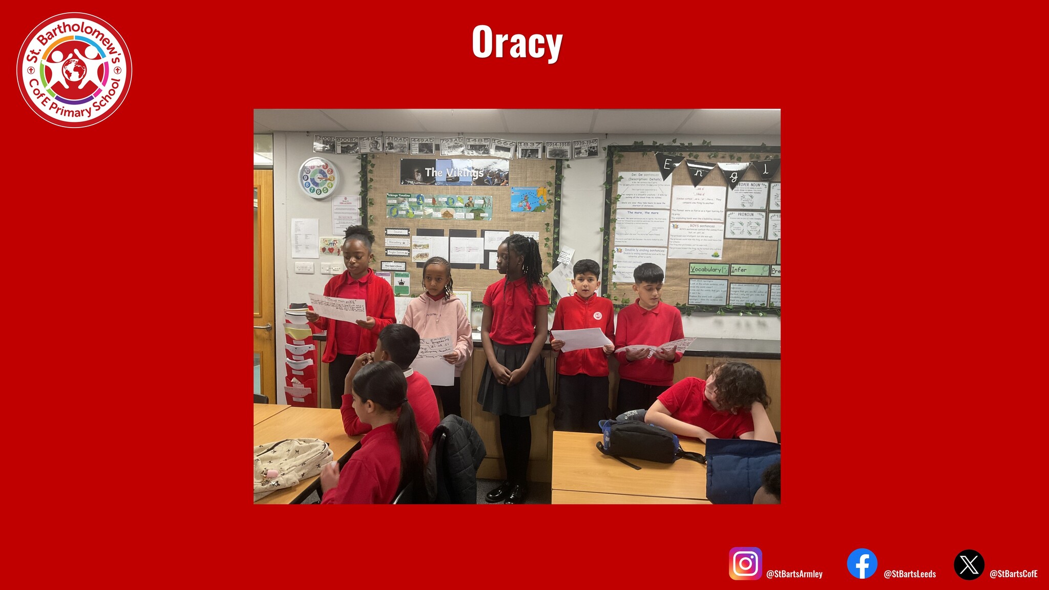 At St Bart’s we ensure children receive at least one explicitly taught oracy lesson each week across a range of different subject areas. Our teachers ensure children have the opportunity to see what effective speaking looks like for a range of different purposes.